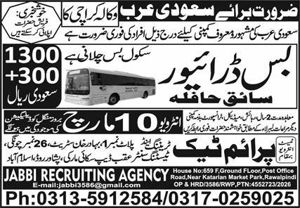 A well-reputed recruiting agency is currently hiring experienced Bus Drivers for a leading transportation company in Saudi Arabia. This is an excellent opportunity for professional drivers who want to work abroad and earn a competitive salary with additional benefits.